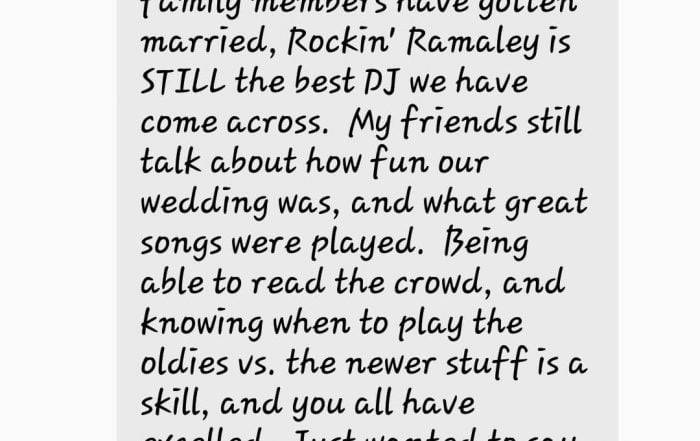 Katie Thanks Rockin’ Ramaley Years after Wedding!